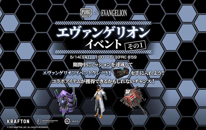 PUBG JAPANは、『PUBG MOBILE』において、日本リリース4周年を記念したスペシャルコラボレーションとして2022年5月14日(土)より『エヴァンゲリオン』とのコラボレーションを開催している。
