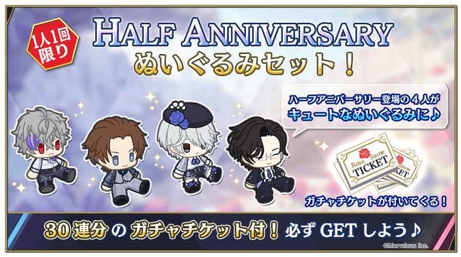 ハーフアニバーサリー衣装のぬいぐるみやメッセージカードなどおひとり様1回限り、 ここでしか手に入らない限定アイテムのお得なセットを販売中です!ここでしか手に入らない限定アイテムのお得なセットです!ぜひチェックしてくださいね♪