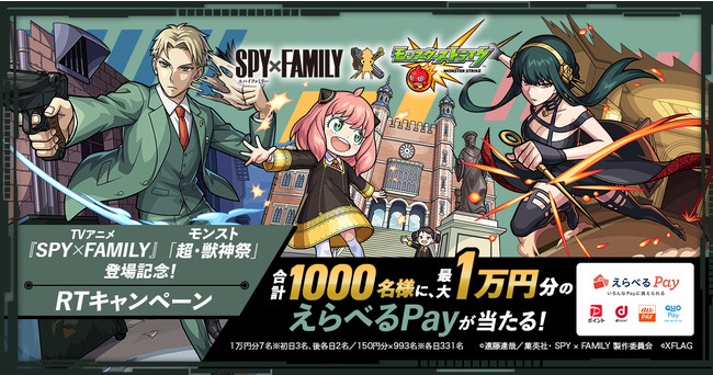 キャンペーン名称:TVアニメ『SPY×FAMILY』×モンスト「超・獣神祭」コラボ記念!TwitterRTキャンペーン