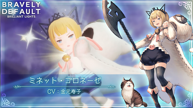 スクウェア・エニックスは、『ブレイブリーデフォルト ブリリアントライツ』において、本日(6月1日)より、『ブレイブリーセカンド』から新キャラクター、猫の抗体を埋め込まれた「ねこ使い」のアスタリスク所持者「ミネット・ゴロネーゼ」(CV:金元寿子さん)がプレイアブルキャラクターとして登場する。