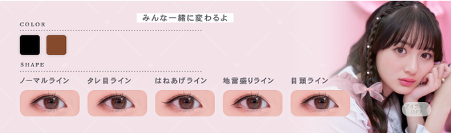 その他にも、 ドーリーまつげ・うるキラ涙袋・選べるアイラインなど、 量産型・地雷系・儚げ女子の好む化粧テクニックに注目した多彩な盛り機能で、 トレンドを手軽に楽しむことができます。