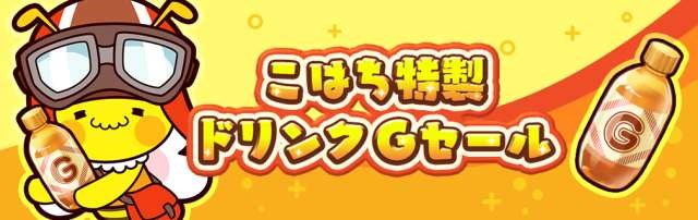 本日より、『ハニプレ』内の交換所にて「こはち特製ドリンクGセール」を開催する。ゲリラライブへゲスト参加する際に必要な「ゲリラパス」が不足したら「こはち特製ドリンクG」を手に入れて消費した「ゲリラパス」を回復させよう!