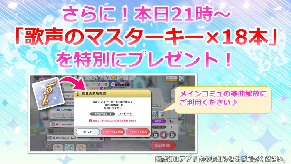 ★さらに!本日21時~「歌声のマスターキー×18本」を特別にプレゼント!