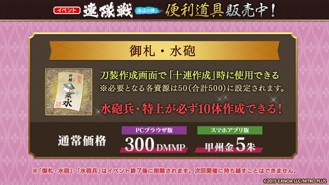 ■「連隊戦 ~海辺の陣~」で役立つ便利道具を期間限定で販売