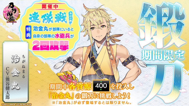 ■期間限定鍛刀キャンペーンにて「治金丸(cv.熊谷健太郎)」が登場中