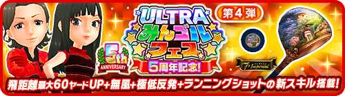 また、 同日より、 プラチナランク(PR)出現確率が4倍かつ、 限定アイテムが登場する「5周年記念ULTRAみんゴルフェス」の第4弾を開催する。