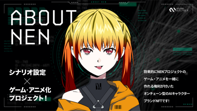 「NEN STUDIO」は、 VTuber事業を約5年企画運営しているPictoriaがスタートさせたNFTプロジェクトで、 AI(人工知能)を活用したAI VTuber「紡ネン」(つむぎねん)をモチーフに制作されている。
