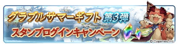 ※他の「スタンプログインキャンペーン」の期間と重複した場合、「グラブルサマーギフト第3弾スタンプログインキャンペーン」が優先される