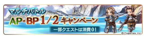 期間中、対象のマルチバトル参戦時における消費 AP・BP が半分、もしくは消費無しになる。