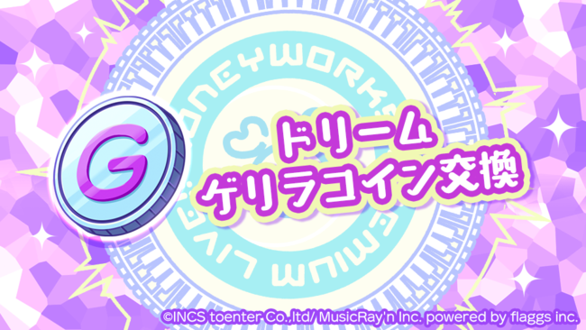 本日9月8日(木)より、 ゲリラライブ専用楽曲をクリアすることで手に入る「ドリームゲリラコイン」を、 好きな進化アイテムや応援アイテムと交換することができる『ドリームゲリラコイン交換所』を開催いたします。 この機会にぜひ交換所をご利用ください。