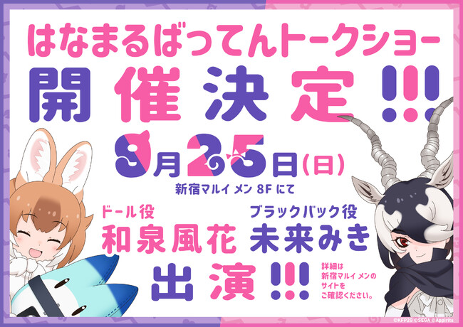 そして、 最終日の9月25日(日)には、 「けものフレンズ3」3周年企画として、 ドール役の和泉風花とブラックバック役の未来みきによるトークショーを開催することが決定した。