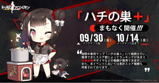 期間中専用マップにて戦闘を行い、 獲得できたスコア数によってランキングが決まり妖精やダイヤなどの各種報酬が獲得できるランキング戦「ハチの巣+」を初開催する。