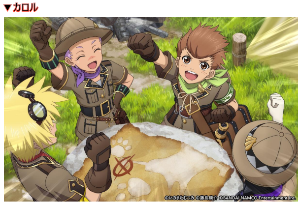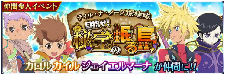 また「ティル・ナ・ノーグ探検隊 ~目指せ! 秘宝の眠る島~」ガシャにはカロル(「テイルズ オブ ヴェスペリア」)、カイル(「テイルズ オブ デスティニー2」)、ジェイ(「テイルズ オブ レジェンディア」)、エルマーナ(「テイルズ オブ イノ