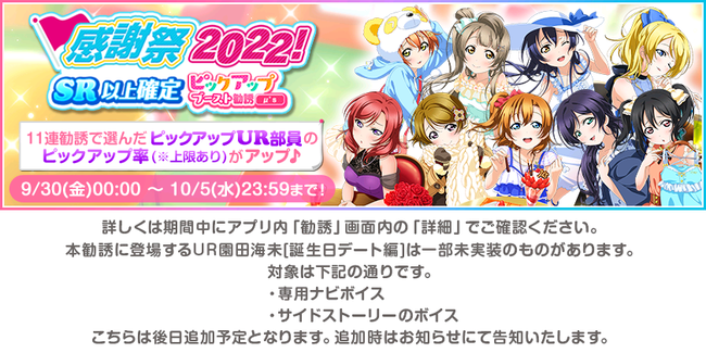 ブシロード<7803>は、KLab<3656>と共同開発した『ラブライブ!スクールアイドルフェスティバル』(以下『スクフェス』)において、スクフェスハロウィン2022キャンペーン第1弾の開催を決定した。