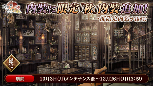 EXNOA、『文豪とアルケミスト』でイベント『調査任務「秋は紅葉と共に」』を開催!イベント『館長の共同研究』、新規『秋』内装販売開始