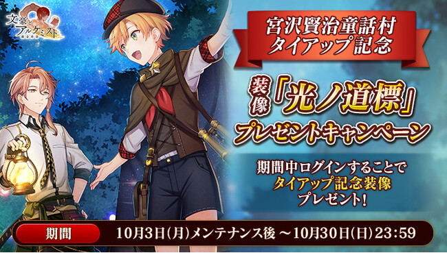 宮沢賢治童話村とのタイアップを記念して、 期間中ログインすることで「宮沢賢治」の装像「光ノ道標」をプレゼント!