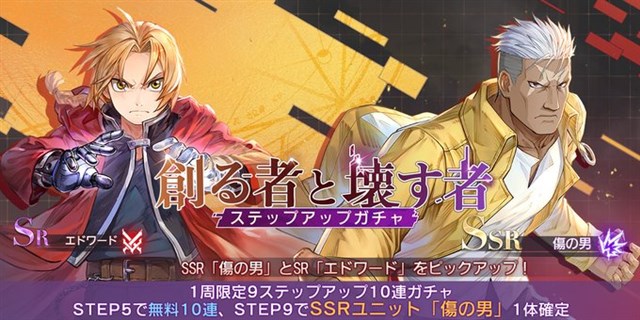 スクエニ、『鋼の錬金術師 MOBILE』でピックアップガチャ「創る者と壊す者」を10月6日12時より開催 SSR「傷の男」とSR「エドワード」をピックアップ!