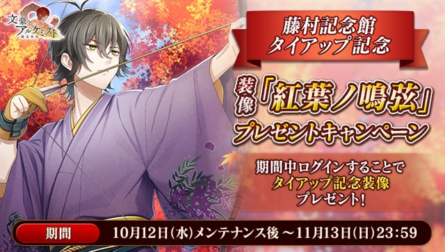 藤村記念館とのタイアップを記念して、期間中ログインすることで「島崎藤村」の装像「紅葉ノ鳴弦」をプレゼント!