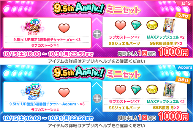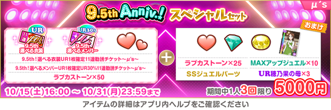 スクフェス9.5th Anniversaryログインボーナス 第1弾