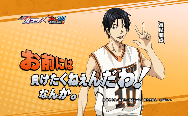 ファイブクロスから配信中のリアルなストリートバスケを体感できるスマホ向け対戦型ゲーム「スマッシュダンク」は、 2022年10月18日(火)より、 人気アニメ『黒子のバスケ』とアニメ10周年記念としてコラボイベントを開始した。ゲーム内に黒子や火神、 「キセキの世代」の人気キャラクター達が登場!さらに、 彼らの頼もしい相棒や仲間たちが新選手として登場する。