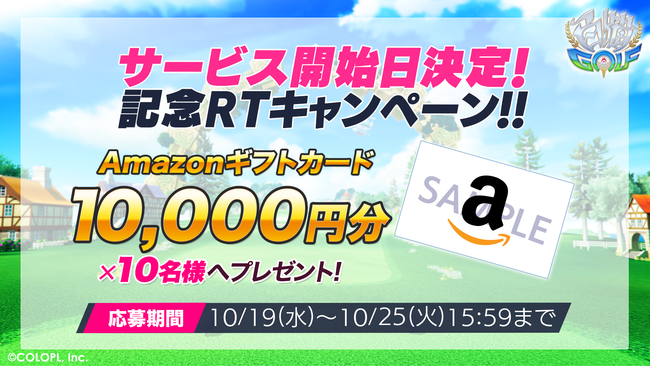 サービス開始日の決定を記念して、 公式Twitterアカウント(@wcat_golf)では「Amazonギフトカード10,000円分」が抽選で10名様にあたるリツイートキャンペーンを開催中。 『白猫GOLF』公式Twitterアカウントをフォローし、 対象のツイートをリツイートすることで応募が完了となる。