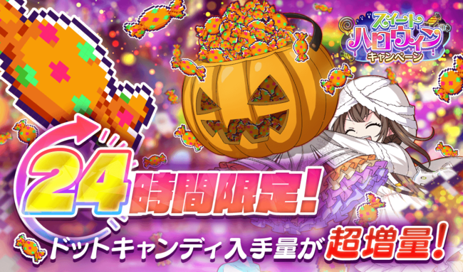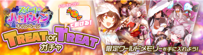 ・【ハロウィン当日24時間限定】スイートハロウィンパーティー開催!「ドットキャンディ」を大量GETできるチャンス!「TREAT or TREATガチャ」を回そう!