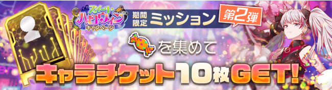 ミッション達成でキャラチケット10枚や「★3 オオカミガール アントワネット」のアニマなどが獲得できるハロウィン期間限定ミッション第2弾を開催。仮想空間[ALICE]に散らばったお菓子「ドットキャンディ」をたくさん集めてミッションをクリアしよう。