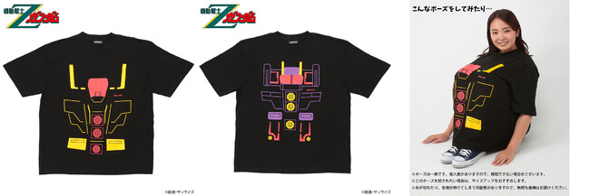 ラインアップは「ビッグシルエットTシャツ」、 「ビッグアクリルスタンド」の2種を展開する。ビッグシルエットTシャツは、 着用すればサイコ・ガンダム気分も味わえるアイテムだ。