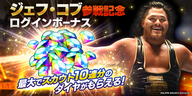 - ジェフ・コブ選手参戦記念として、 累計1,500ダイヤが獲得できる「ジェフ・コブ参戦記念ログインボーナス」が開催!