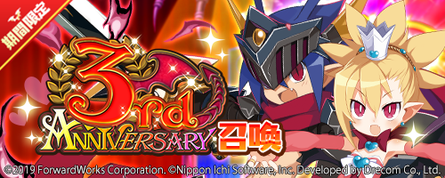 『魔界戦記ディスガイアRPG』の3周年を記念して、 お得が満載の特別企画・キャンペーンを多数同時開催する。