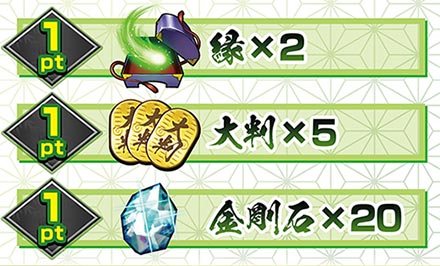 ◇実施内容:実施期間中『英傑大戦』をプレイすると下記の条件に応じて【店舗ポイント】を獲得できる。