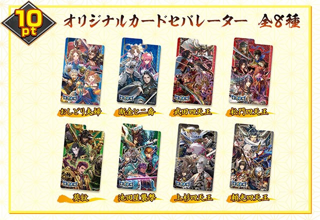 また、 今回のグッズキャンペーンでは、 各店舗で集めたポイントをデジタルアイテムに交換することができ、 「武将カード EX井伊直弼」をはじめ、 ゲーム内で使用できる各種アイテムが入手可能。