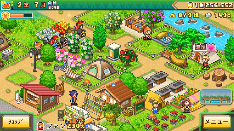 森の空気がおいしいキャンプ場の経営シミュレーションゲーム。森林を整備して立派なキャンプ場をつくりましょう。グッズ販売のショップ経営もある。大自然と融合した人気キャンプ場を君の手で経営しよう。