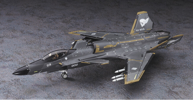脚回りは飛行状態と駐機状態の選択が可能。着座姿勢のパイロットフィギュア、 長距離空対空ミサイル×6、 70mmロケット弾ポッド×4が付属。