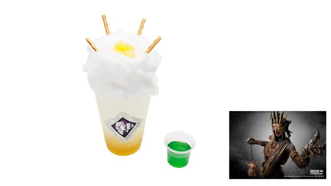 『Dead by Daylight』のキャラクターやアイテムをモチーフにしたオリジナルデザート&フードを販売します。対象メニューを1品お買い上げごとに、各メニューに紐づいた絵柄のイラストシートが1枚もらえます。