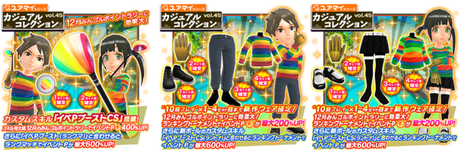 また、 同日より「ゴルフをもっと身近に手軽におしゃれに」をコンセプトにした、 『みんゴル』オリジナルブランドである「ユアマイ」シリーズのウェア・ギア(クラブ・ボール)が登場するプレミアムガチャ、 「カジュアルコレクション Vol.45」も開催する。
