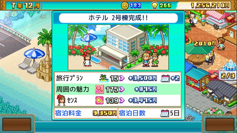 まずはオープンに向けて宿泊施設を建築して、お客さんを迎え入れよう。宿周りの環境を整えるとステキな旅行プランが見つかりそう。観光客が喜ぶ旅行プランを増やしていこう。リゾートを発展させていけば、お客さんの目的も叶えられるかも。