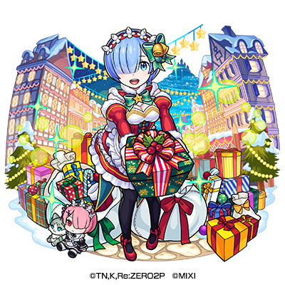コラボでは、メインヒロインの「エミリア」と双子のメイド「レム」「ラム」がクリスマス仕様となって、モンストのガチャに期間限定で登場する。