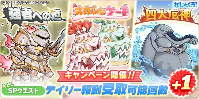 「全SPクエストデイリー報酬回数増加キャンペーン」の開催期間中は、全てのSPクエストのデイリー報酬回数が+1回増加し、「マスタークエストデイリー報酬回数増加キャンペーン」の開催期間中は、マスタークエストのデイリー報酬回数が+1回増加します!