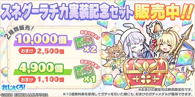 EXNOAは『れじぇくろ!~レジェンド・クローバー~』で、新キャラ「スネグーラチカ」の登場を発表した。 さらに「スネグーラチカ」の実装を記念した「スネグーラチカ実装記念セット」も販売する。