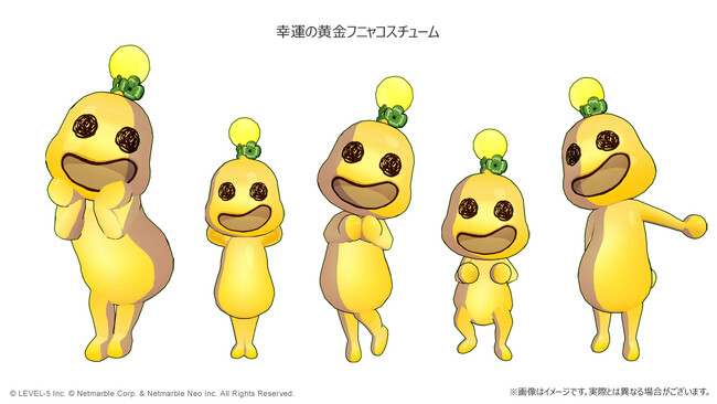 新年を記念して各キャラクターに「幸運の黄金フニャコスチューム」を追加しました。「幸運の黄金フニャコスチューム」は、新年イベント「フニャ幸運祭」を通じて入手することができます。