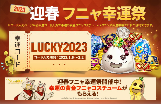 ・『二ノ国:Cross Worlds』公式フォーラム:フニャ幸運祭の幸運コードイベント