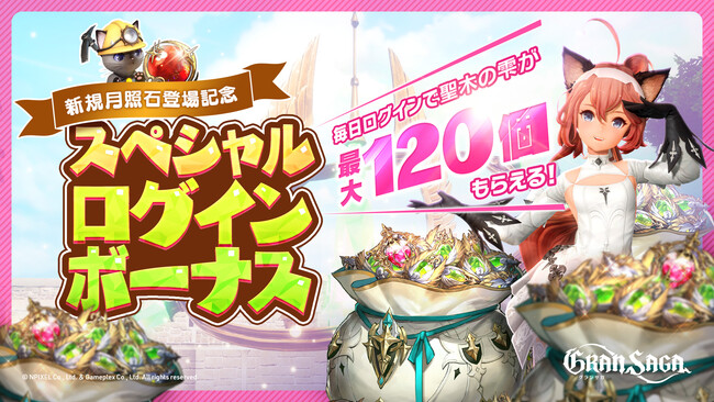 また、 本日のアップデートより新規月照石が登場。月照石追加を記念した、 毎日ログインで120回召喚分の「聖木の雫」が貰えるスペシャルログインボーナスも開催している。