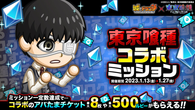 アソビズムは『城とドラゴン』で、 TVアニメ『東京喰種トーキョーグール』(以下、 『東京喰種』)との復刻コラボイベントを、 2023年1月13日(金)より開催する。