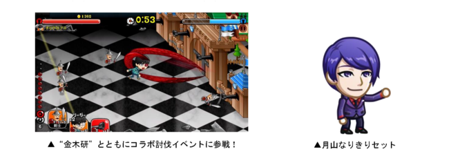 バトル内の「SP討伐イベント」から、限定キャラ“金木研”を使用して挑戦できるコラボSP討伐イベント「金木覚醒!」に挑戦できる。特定のステージをクリアすることで剣士専用の限定お着替え“月山なりきりセット”を獲得することができる。