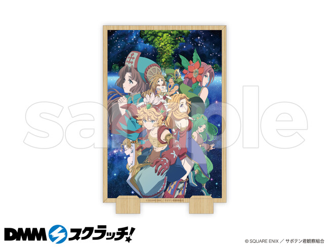 アニメのキービジュアルを使用した高級な木製フレームのアクリルパネル。マナの木を巡る物語にピッタリの暖かみのあるアイテムとなる。