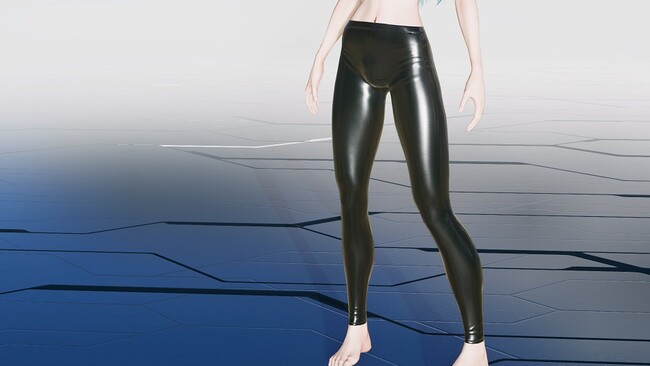 エナメル素材のレギンス型ボディペイント。