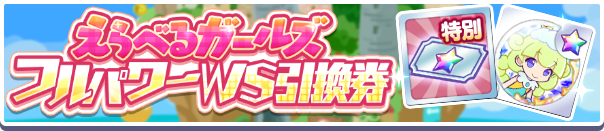 内 容:「ガールズフルパワーピックアップガチャ」に出現する「フルパワーキャラクター」の「WS(ワイルドストーン)」から好きなキャラクターの「WS(ワイルドストーン)」と交換できる「えらべるガールズフルパワーWS引換券」が登場する。