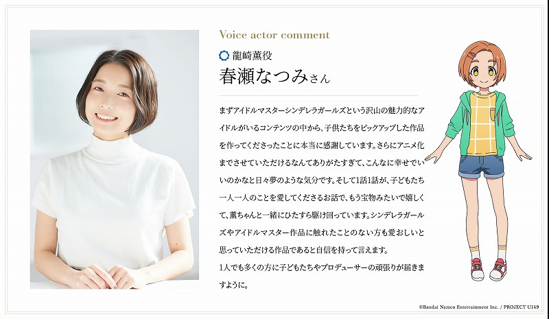 バンダイナムコエンターテインメントは、 TVアニメ「アイドルマスター シンデレラガールズ U149」の最新情報を発表した。