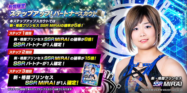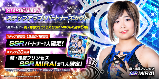 - スターダムから、SSRパートナーMIRAIが初登場!STARDOM限定ステップアップパートナースカウトを開催!